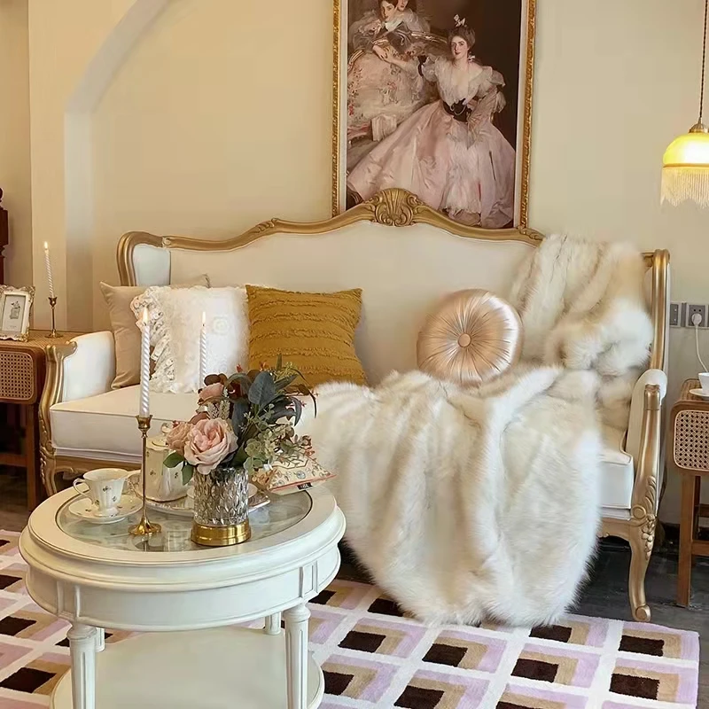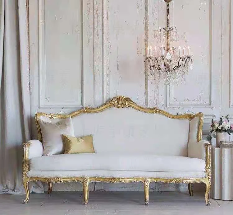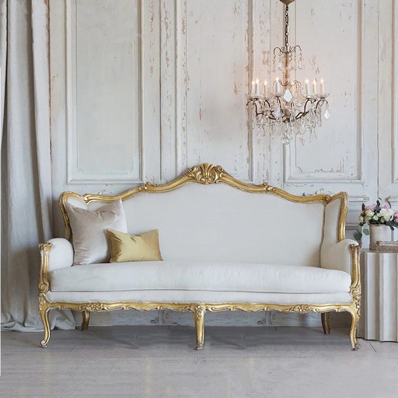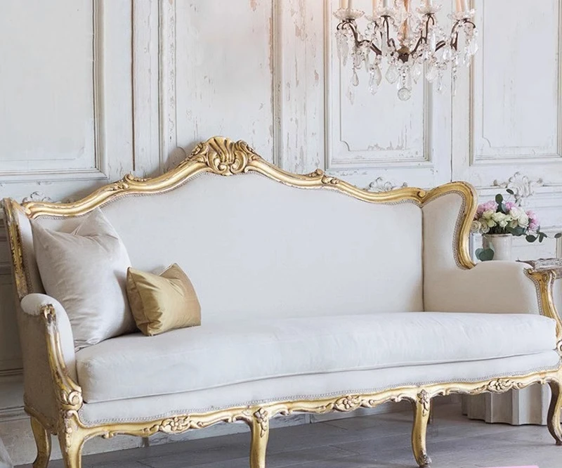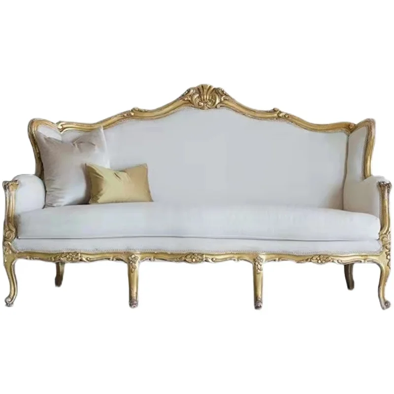 New European-style carved solid wood sofa luxury fabric home